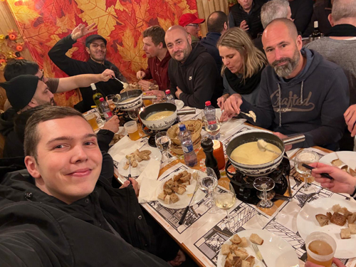 Im Anschluss sind wir direkt beim Chäsbängel-Stand ins «Fondue-Stübli», wo wir in vollen Zügen unser Fondue genossen haben. Nach dem Essen hat Mischa sogar eine kleine Rede geschwungen, die unsere Herzen gerührt und unsere Gesichter erröten lassen hat. Nach ein paar Gläsern Wein haben wir uns in das Geisterhaus getraut.